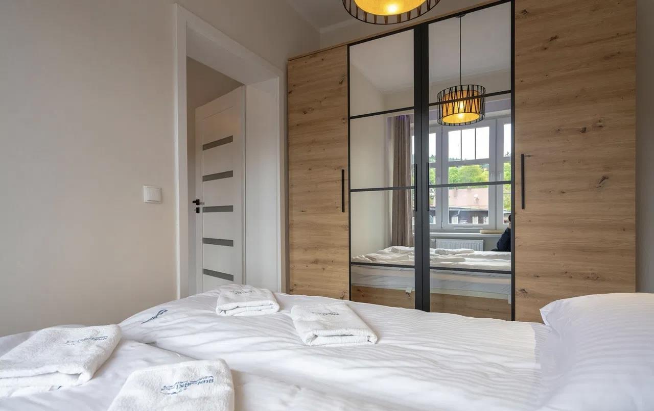 Centrum Szklarskiej Poręby, ul. Jedności Narodowej – w sąsiedztwie sklepy, restauracje, punkty usługowe, a jednocześnie blisko szlaków turystycznych i terenów rekreacyjnych.